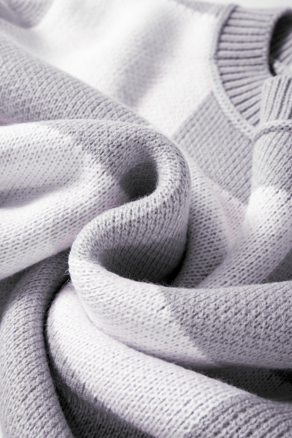 Orange & White Plaid Exposed Seam Bishop Sleeve Sweater - Grapefruit Orange / S